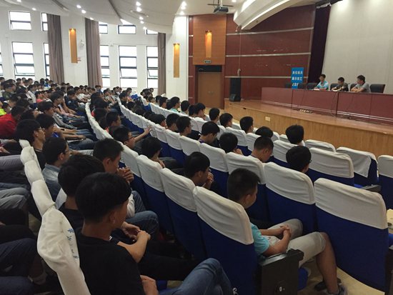 杨志良主任要求全体与会学生在执行好学校管理条例的基础上,认真学习积分制方案,争做加分题,少做扣分事,强化纪律观念,抵制不良习气,提高执行制度的自觉性。同时,希望16级新生增强集体荣誉感,要巩固军训成果,建设文明宿舍,争创“7S”管理先进班级。