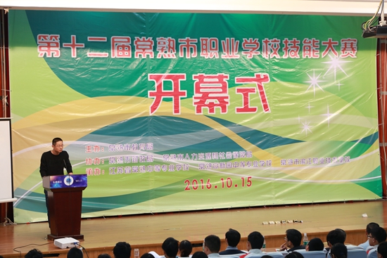 2016年10月15日,由常熟市教育局主办,常熟市财政局、常熟市人力资源和社会保障局协办,常熟中等专业学校、常熟市滨江职业技术学校、常熟高新园中等专业学校共同承办的常熟市第十二届职业学校技能大赛开幕式在我校隆重召开。