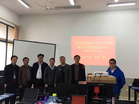 为培养中国制造2025高技能人才、提升学生的创新、创业实践能力,加快我校3D打印创新创业中心建设,322日,国家“千人计划”特聘专家上海西锐三维余金湖董事长、陈勇强总经理来我校访问,对我校3D打印技术专业建设、实训室建设及3D打印技术在创客教育中的应用进行了现场指导。常熟市教育局唐佩军副局长,我校苏建青校长、马骏书记、金华主任和两位专家进行了交流研讨。